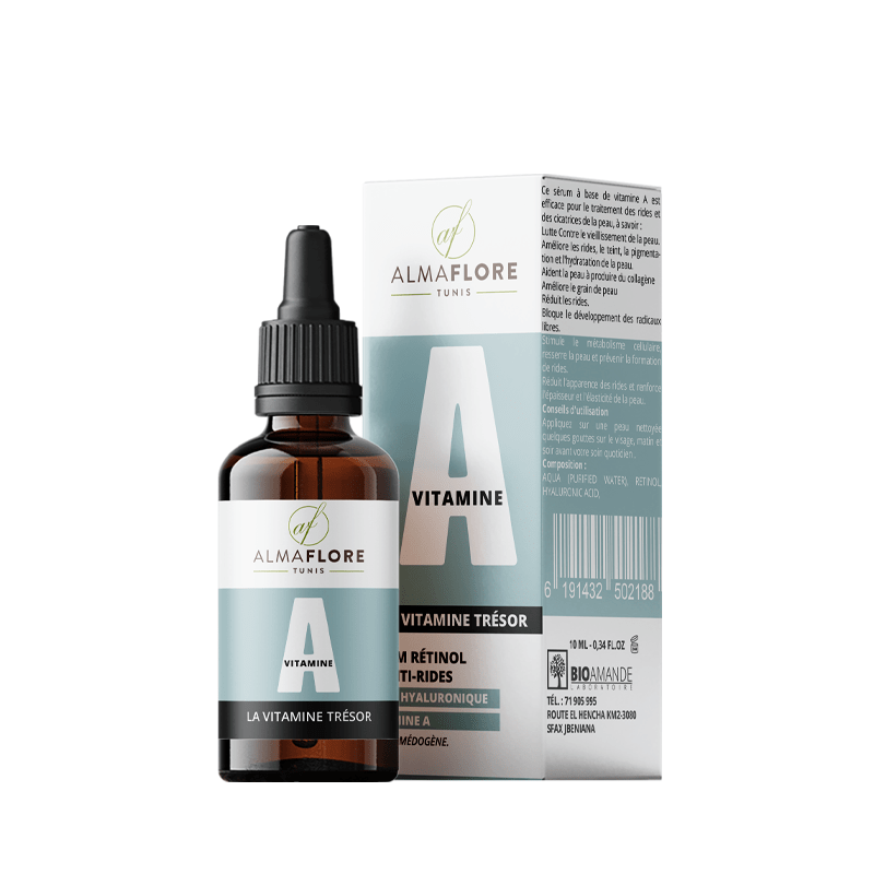 ALMAFLORE VITAMINE A est un produit de beauté qui a été développé pour combattre les problèmes de vieillissement de la peau, les rides et les cicatrices, grâce à l’action du “Rétinol”, qui est un ingrédient essentiel de notre épiderme. La Vitamine A joue un rôle fondamental dans la production de nouvelles cellules qui remplacent celles endommagées par les radicaux libres.