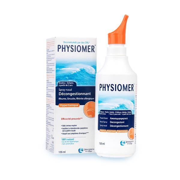 PHYSIOMER Hypertonique est une solution plus salée que les solutions isotoniques qui crée une décongestion mécanique par appel d’eau.