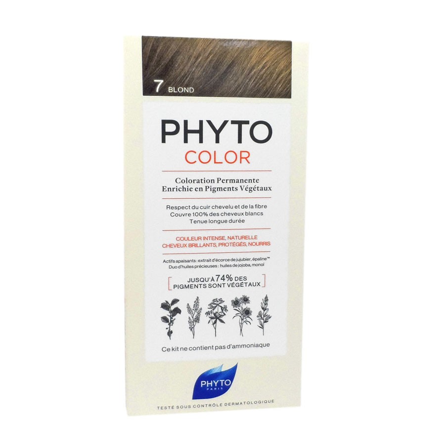 Composition du kit Phytocolor : Lait révélateur 50ml, Crème colorante 50ml, Masque Phytocolor 12 ml, une notice détaillée, une paire de gants.