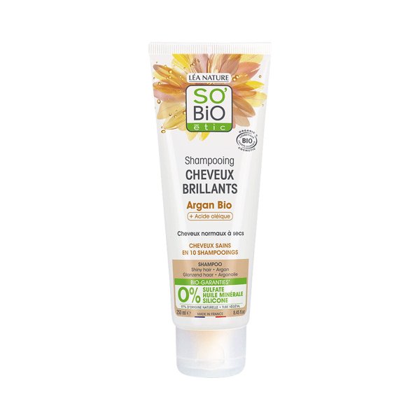- Appliquer SO BIO SHAMPOOING CHEVEUX BRILLANTS ARGAN sur cheveux mouillés, faire mousser et masser le cuir chevelu. Rincer avec soin.