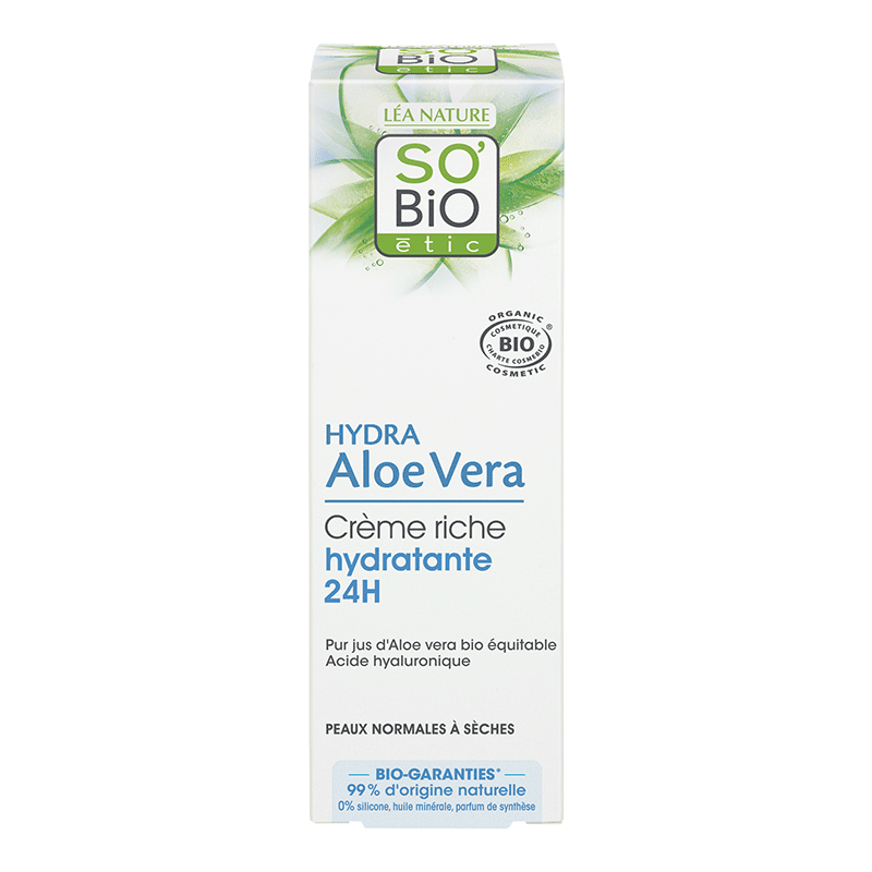 SO’BIO hydra aloe vera creme riche hydratante 24H 50 ml