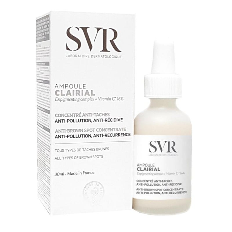 SVR CLAIRIAL Ampoule est un concentré triple action qui corrige dès 14 jours tous les types de taches brunes liées au soleil, au vieillissement cutané, à la grossesse.