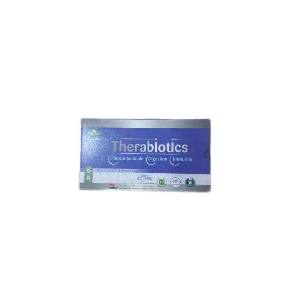 Le complément en gélules Therabiotics de Thérapia est une association de 8 souches bactériennes dont lacto-bacillus et bifidobacterium connues pour leur efficacité à renforcer le bien-être général et l’équilibrer la flore intestinale.