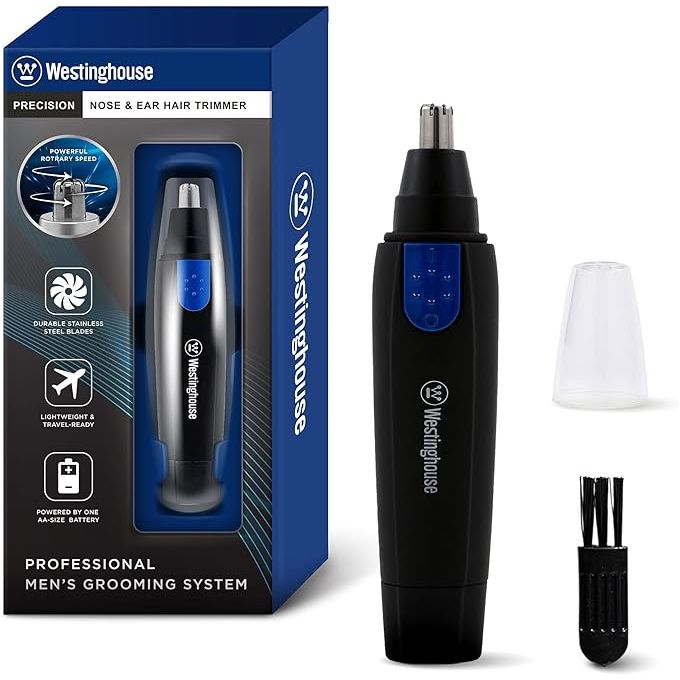 La tondeuse à poils de nez Westinghouse pour hommes est une tondeuse électrique portative fonctionnant sur batterie conçue pour vous aider à vous débarrasser rapidement et efficacement des poils indésirables du nez et des oreilles. Il est compact, léger et parfait pour voyager. Comprend une tondeuse sans fil à bouton-poussoir facile à utiliser, une brosse de nettoyage et un capuchon de protection.